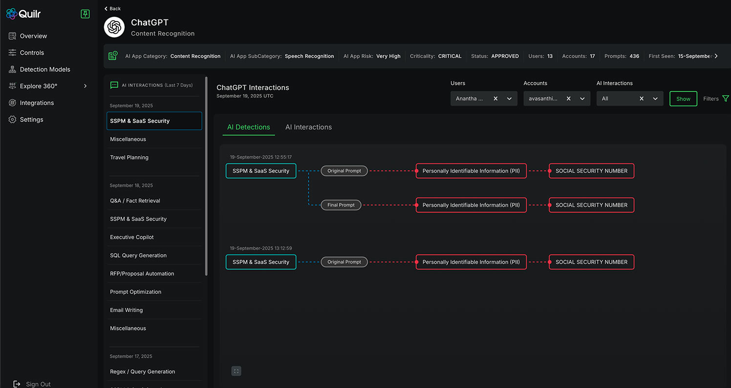 Integrated AI Security Posture Management (AI-SPM) gives CISOs continuous oversight of AI adoption. Monitor usage, enforce policies, and generate compliance-ready reports across all AI tools and agents.
