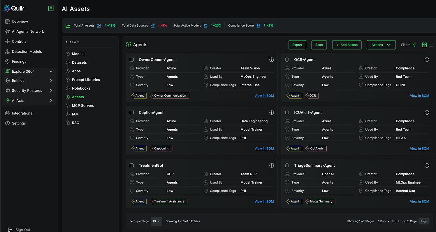 Quilr enforces strict boundaries on autonomous agents, monitoring decisions, limiting risky actions, and maintaining auditability of every task performed.