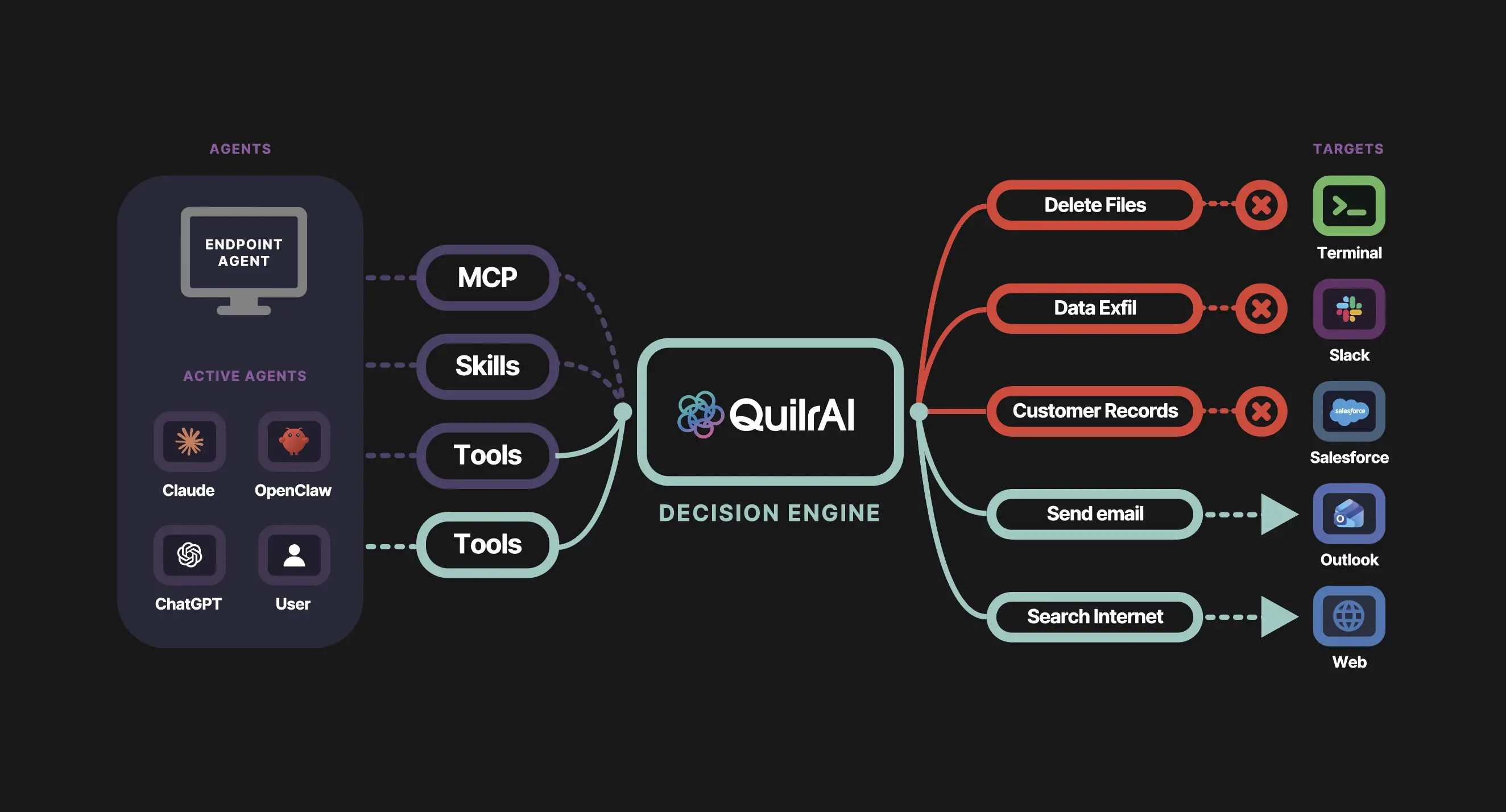 QuilrAI Decision Engine: one reasoning layer across four enforcement planes